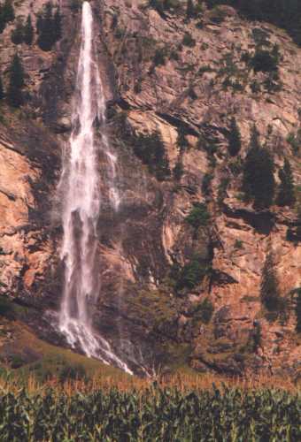 Es gab dort auch noch ein paar Almhütten und vor allem sehr viele Wasserfälle. Im Bild links ist der Schleierfall am Eingang des Maltatals zu sehen. Natürlich gibt es auch Bilder von den Wanderungen. Im Bild links unten sind Thomas und Andreas bei der Rast auf dem Gipfel des Sauereggnock (2240m) zu sehen. Dort steht ein Kreuz zum Gedenken an einen Absturz zweier Piloten. Wie man sehen kann werden die grasbewachsenen Berge bis in die größten Höhen als Weideland ausgenutzt. Das kleine Bild rechts unten zeigt einen Hirsch im Alpenwildpark bei Feld am See. Dort konnte man teilweise direkt durch die Wildgehege hindurchgehen... |